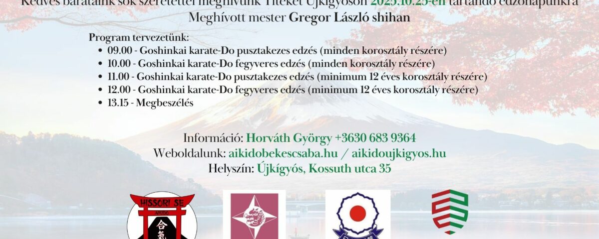 2025.10.25-én szombaton 09.00-14.00 között Shihan Gregor László vezetésével edzőnap kerül megrendezésre!