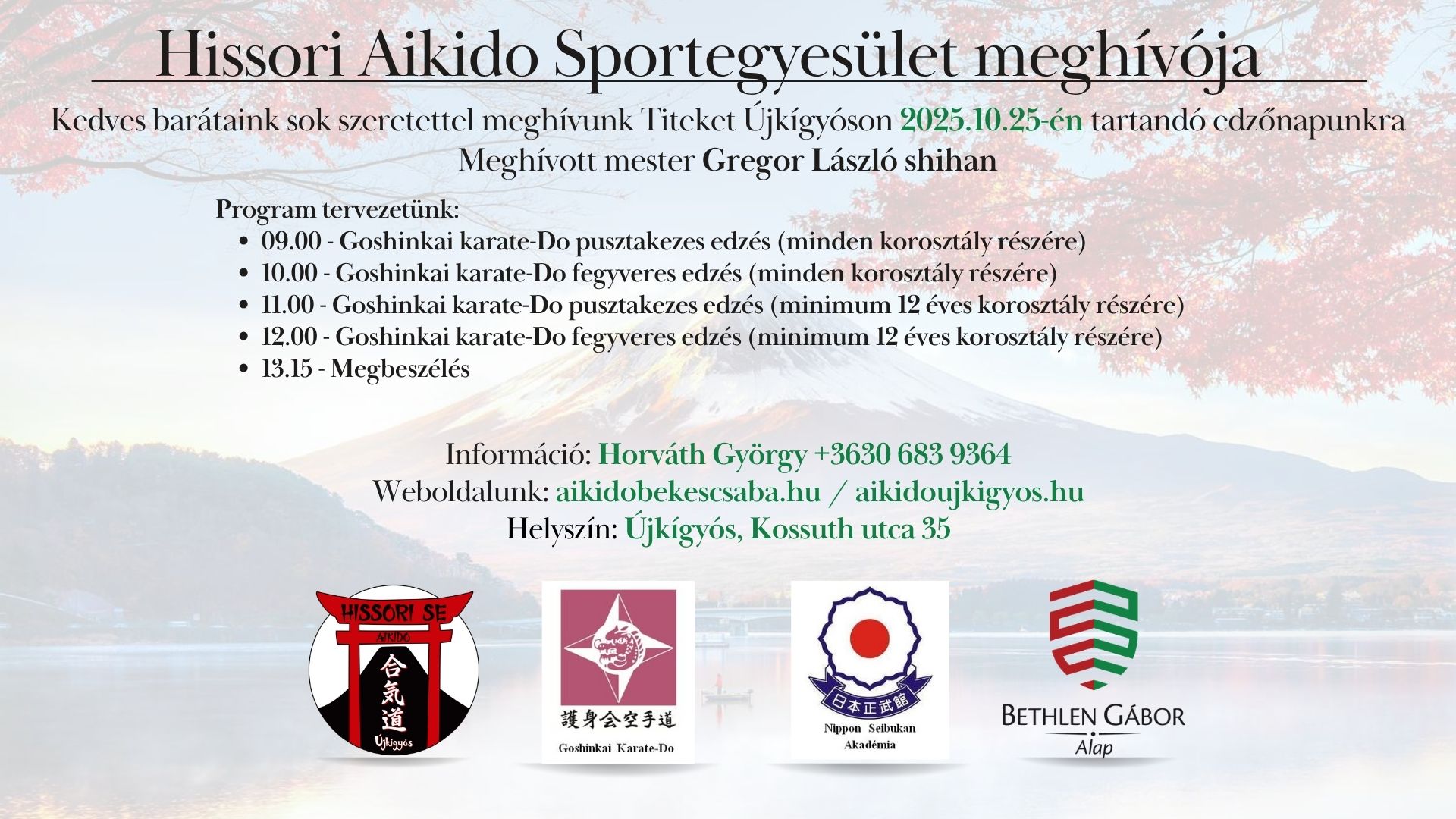 Hissori AIKIDO Sportegyesület programjai